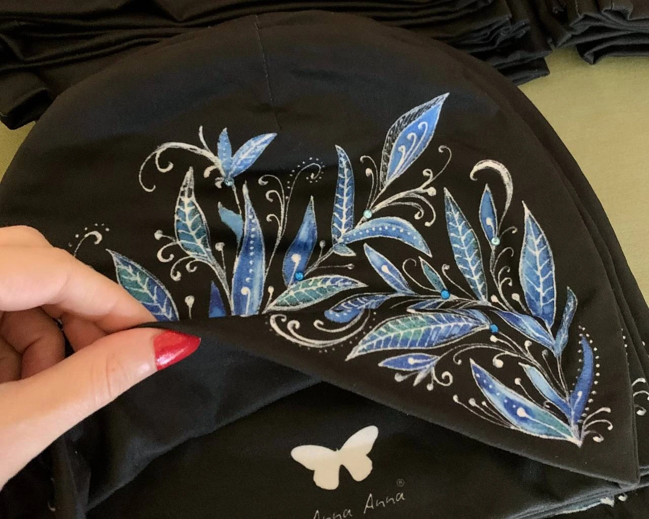 • barvy jsou nádherně zářivé a každá čepice je ručně zdobena kamínky
