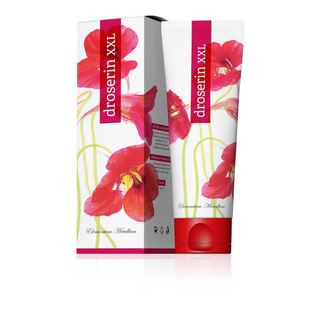 Tato voda třetihorního moře stará miliony let má velký energetický potenciál a unikátní složení. Vyznačuje se vysokým obsahem kyseliny borité, křemičité, chloridů, síranů, fluoridů, uhličitanů, jódu, brómu, draslíku, vápníku, hořčíku, lithia, železa, stopových množství mědi, chrómu, zinku, titanu a dalších prvků a minerálů. Má stálejší a hlubší regenerační efekt než voda z Mrtvého moře. Pro vysoký obsah biologicky aktivních látek, rostlin a minerálů má Droserin silný regenerační vliv na kůži. Krém aplikujeme zevně na obličej a tělo, zejména na krk, šíji a oblast dekoltu. Droserin je lehce roztíratelný a smývatelný vodou. Doporučujeme v kombinaci s přípravkem Vironal a Audiron firmy Energy. Více informací naleznete v letáku.