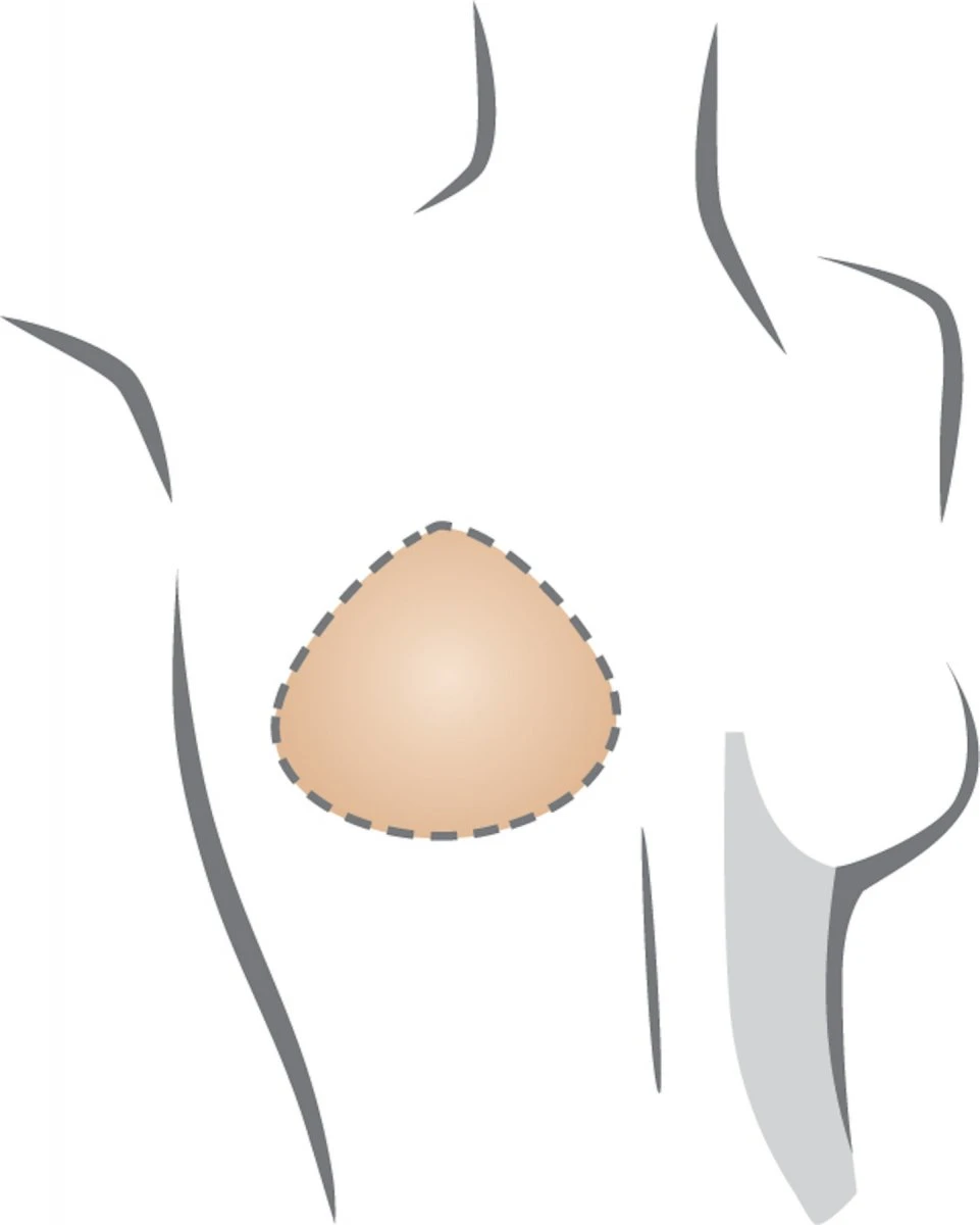 - anatomicky tvarovaná epitéza trojúhelníkového tvaru doplňuje chybějící tkáň po celé ploše prsu