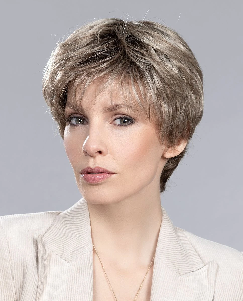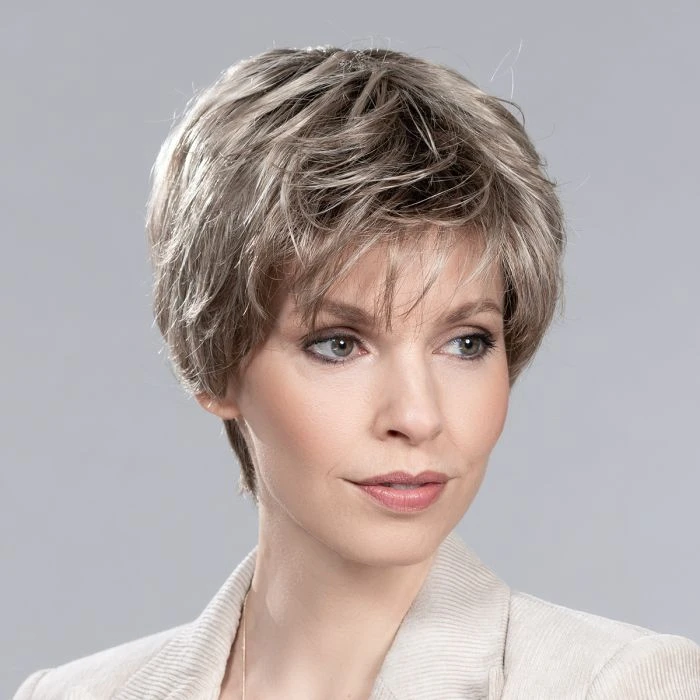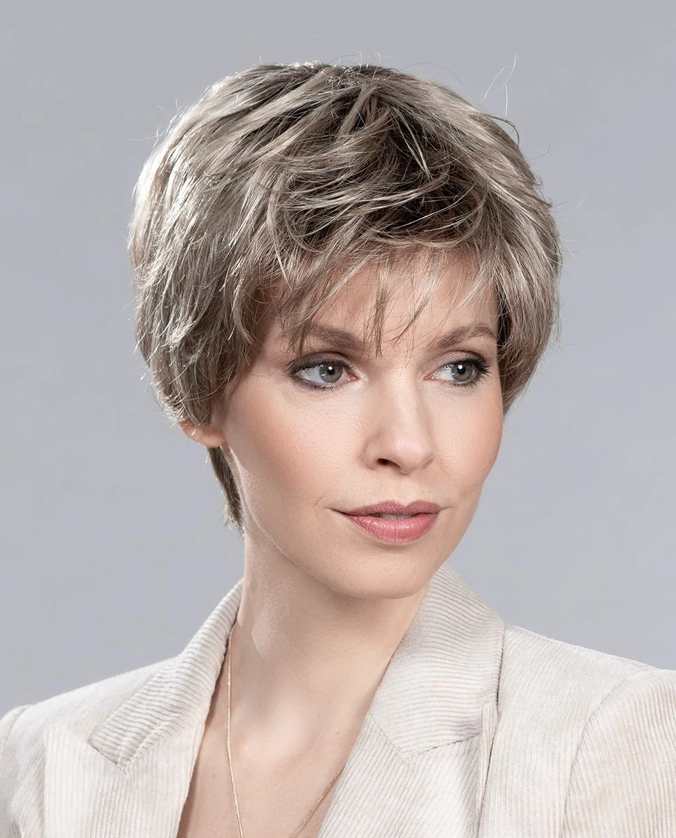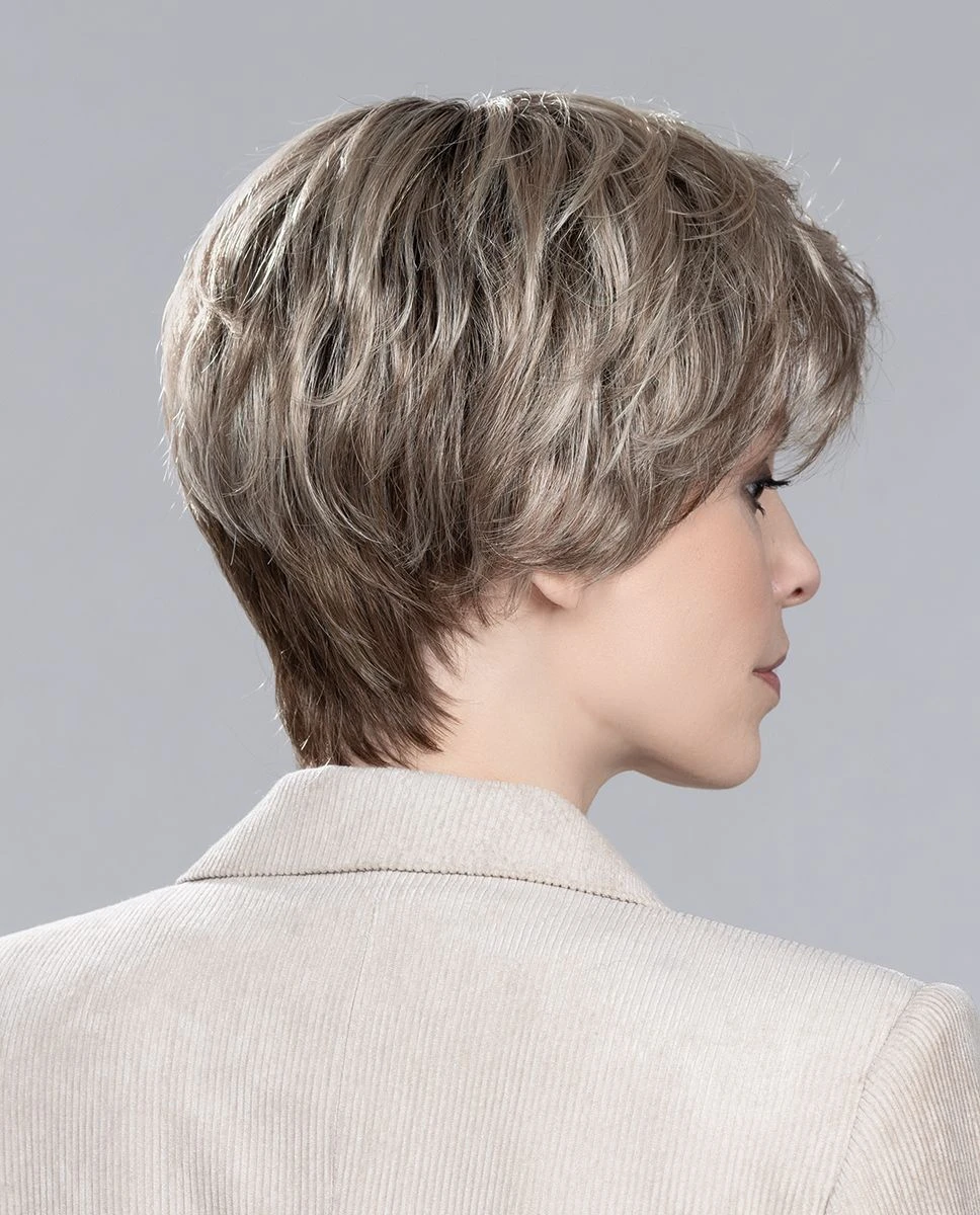 - rooted - u kořínků je paruka tmavší než je zobrazený odstín, vlasy imitují odrost vzniklý melírováním