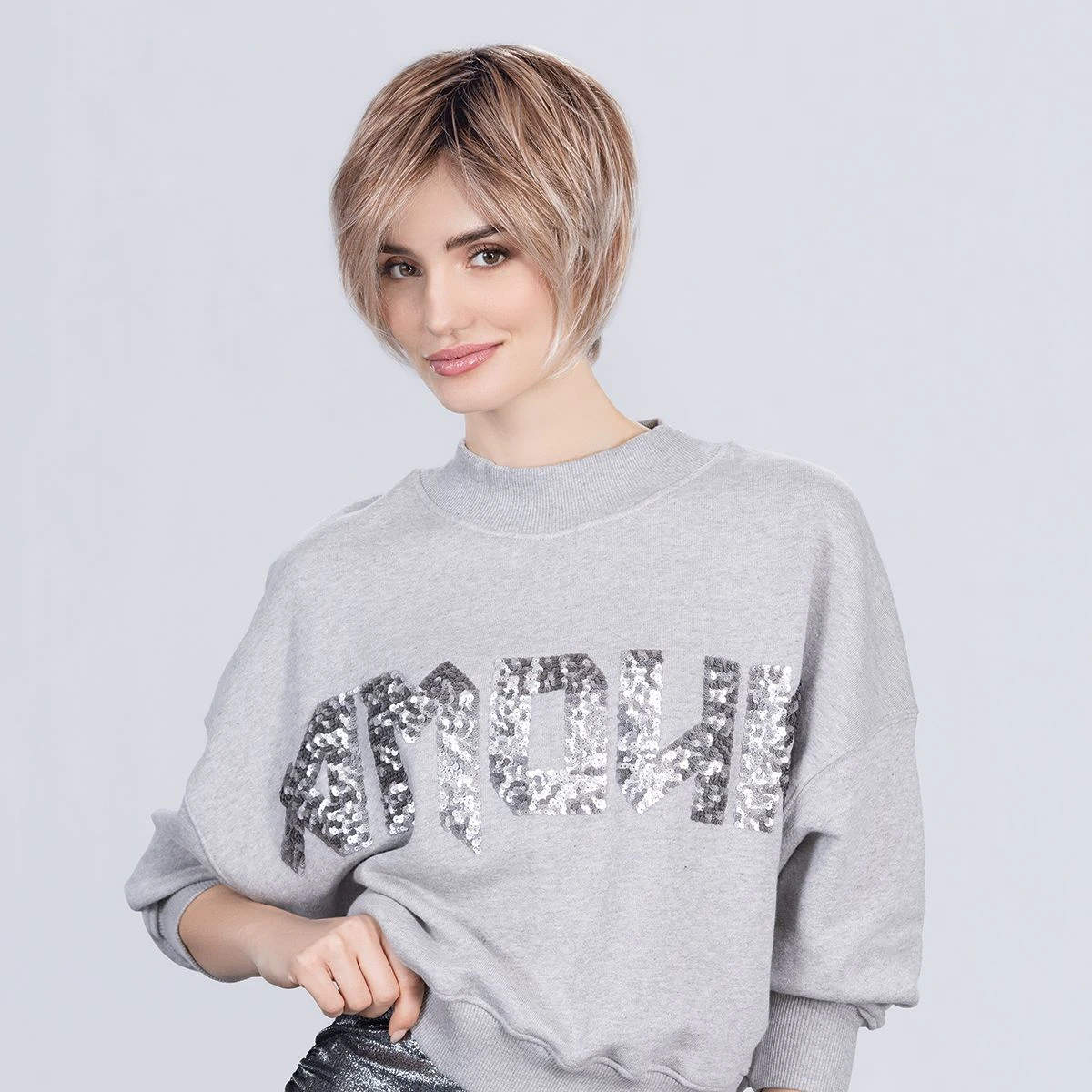 - rooted - u kořínků je paruka tmavší než je zobrazený odstín, vlasy mají odrost