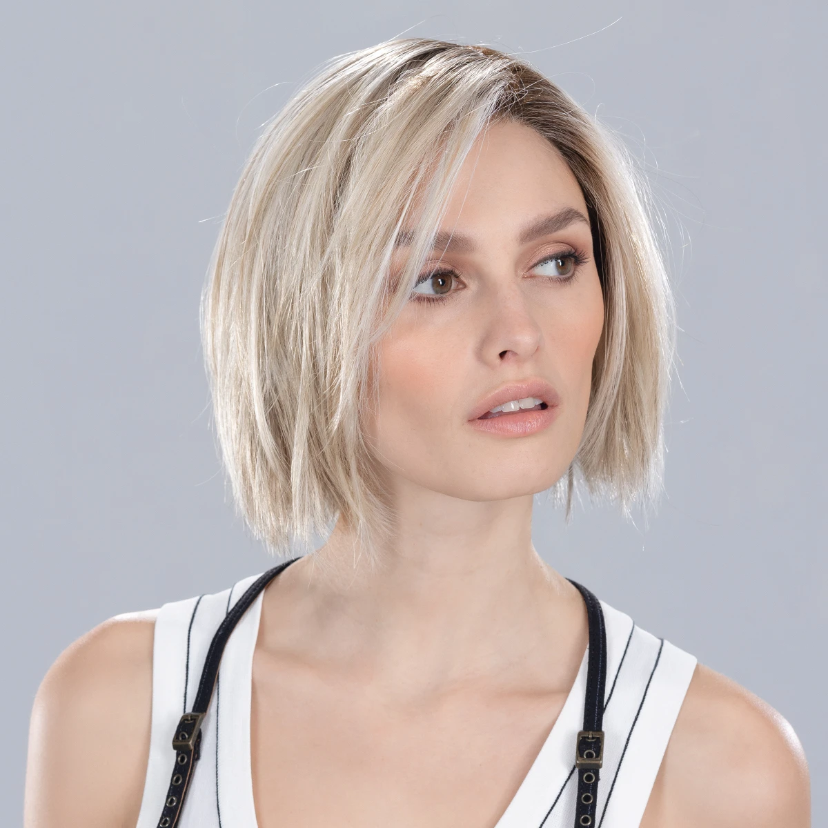 - rooted - u kořínků je paruka tmavší než je zobrazený odstín, vlasy mají odrost