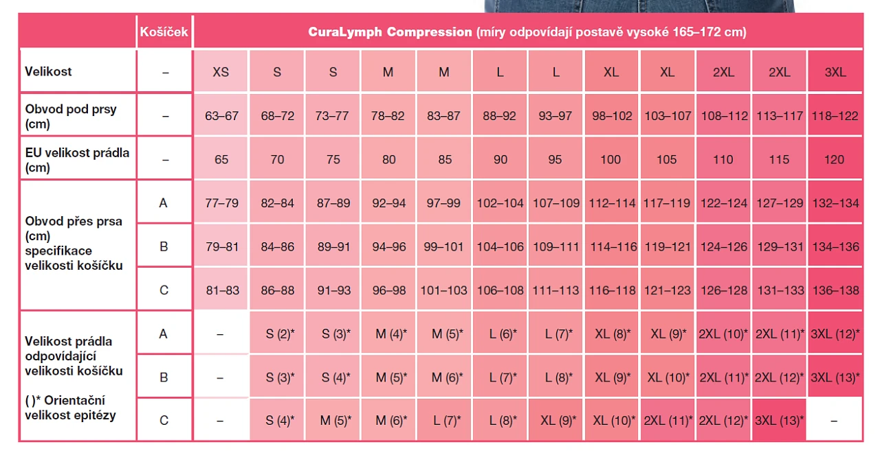 - široká nastavitelná ramínka (3 řady háčků a oček) a široký lem pod prsy odlehčují ramenům a zabraňují zařezávání, aby nedocházelo k narušení lymfatického toku
