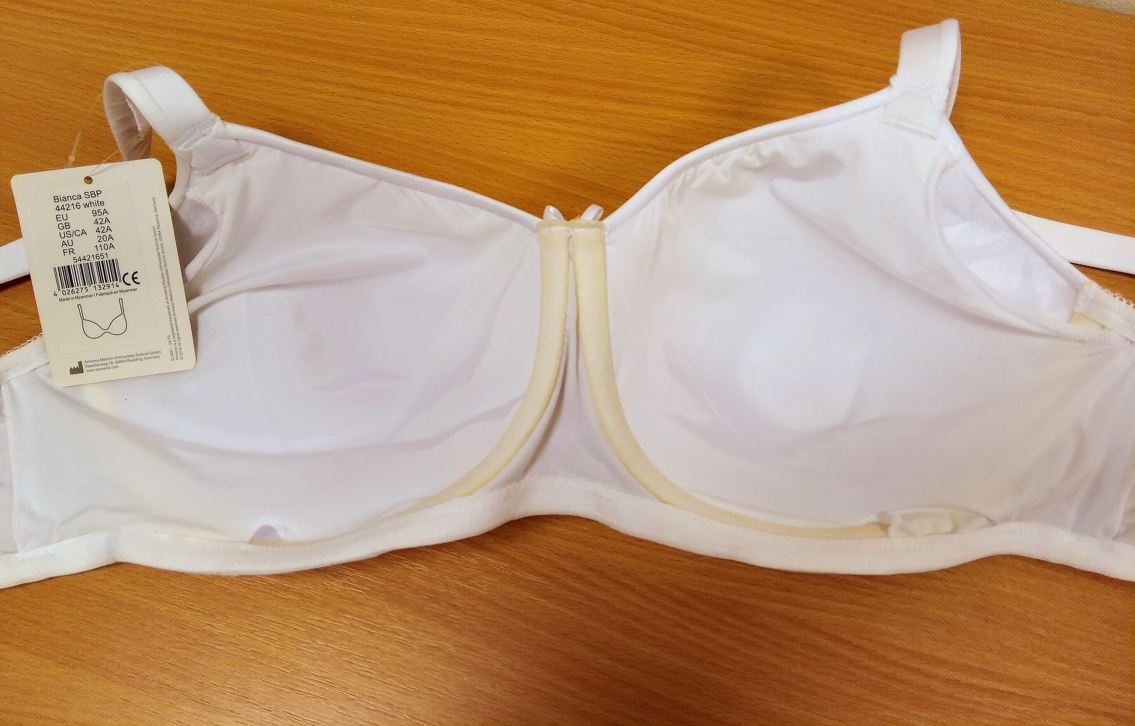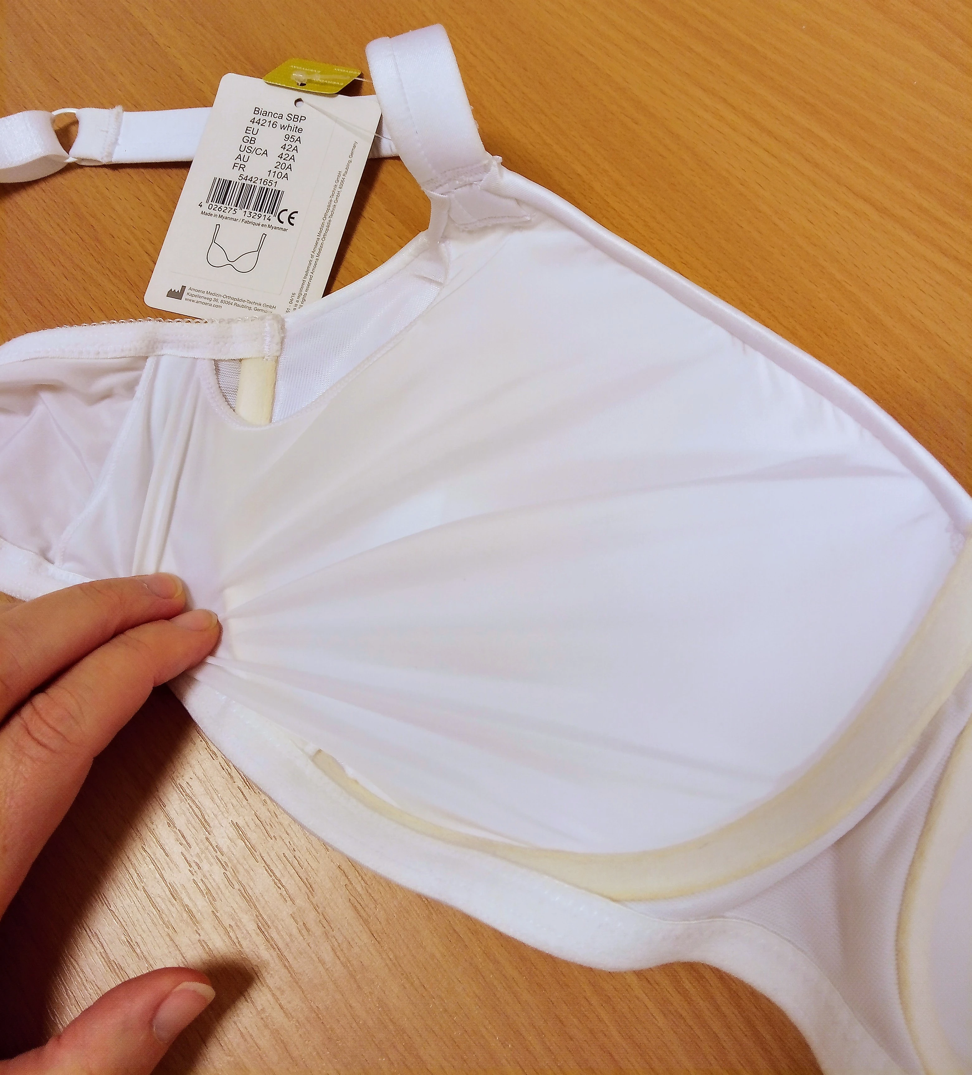 - zažloutlá vnitřní část výztuže košíčku a visačka výrobce