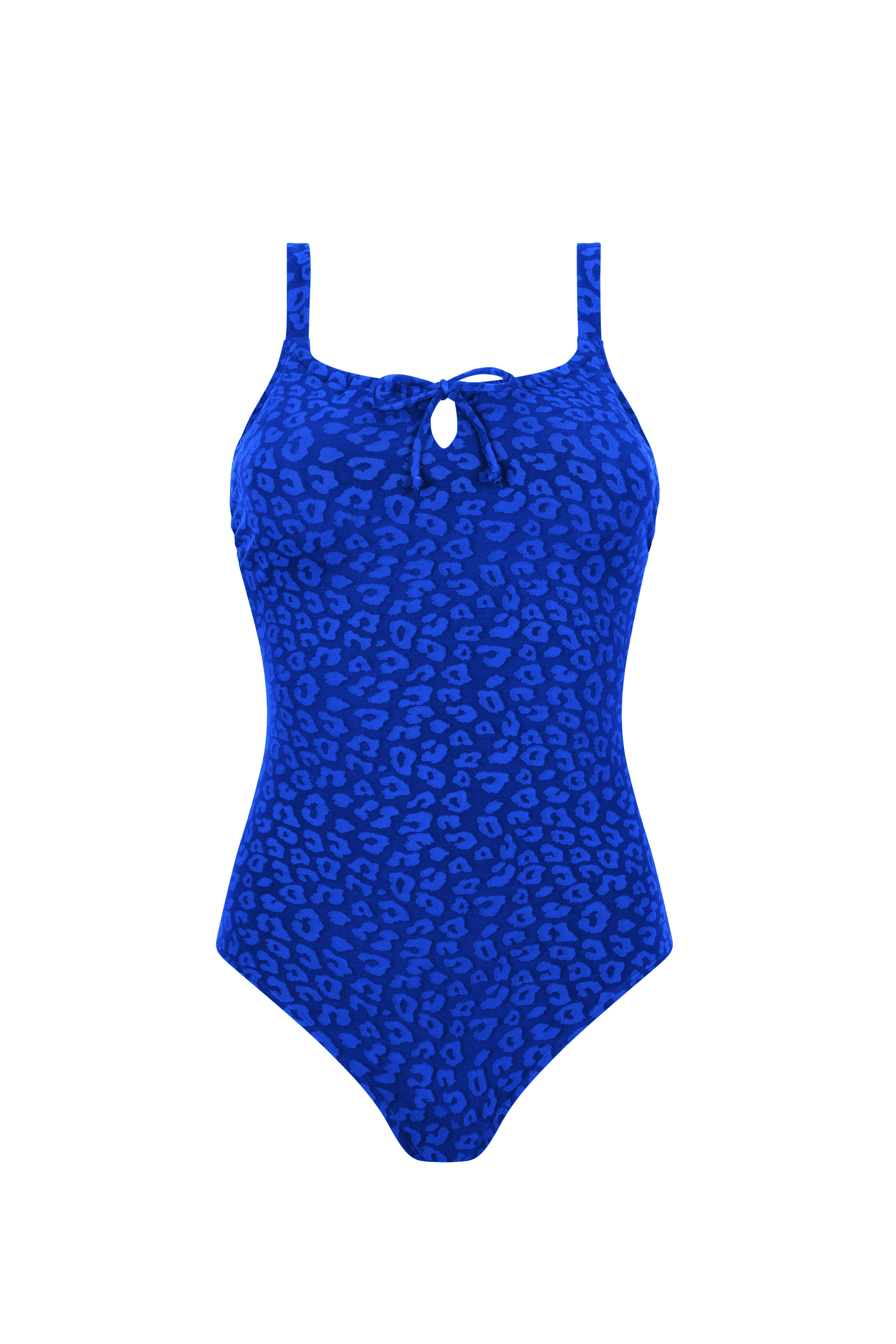 - elegantní jednodílné plavky celopotištěné vzorem kombinací barev nebesky modré a námořnické modré