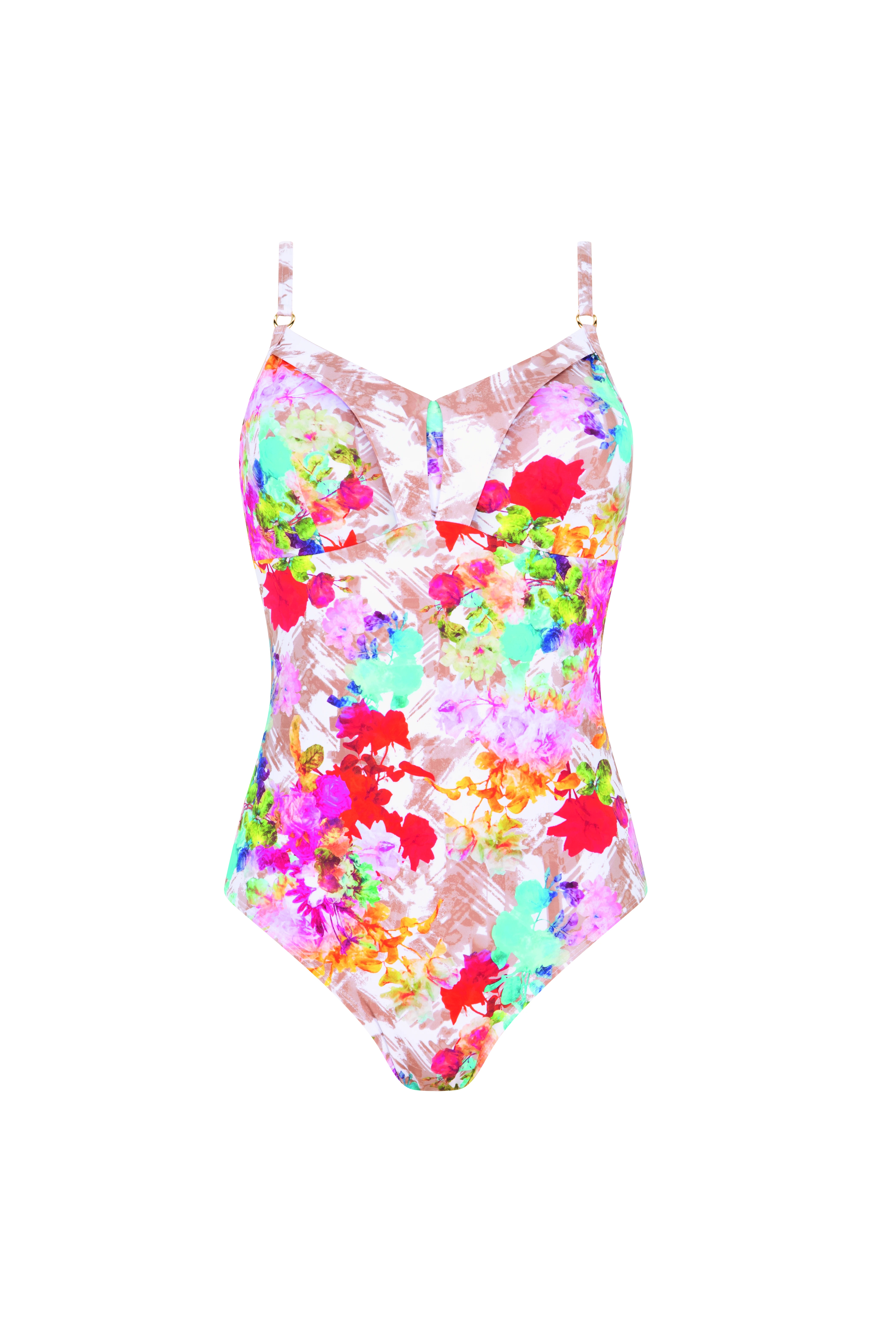 • jednodílné plavky s veselým, pestrým potiskem květů
