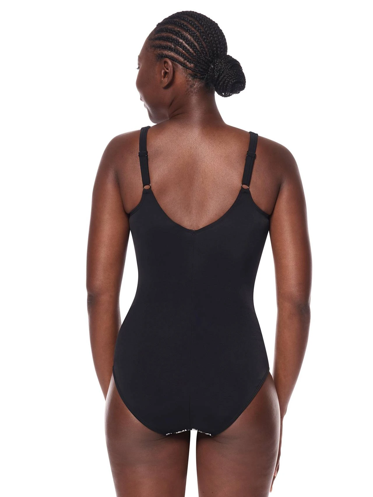 - střih plavek s černými bočními panely lichotí postavě a zeštíhluje siluetu