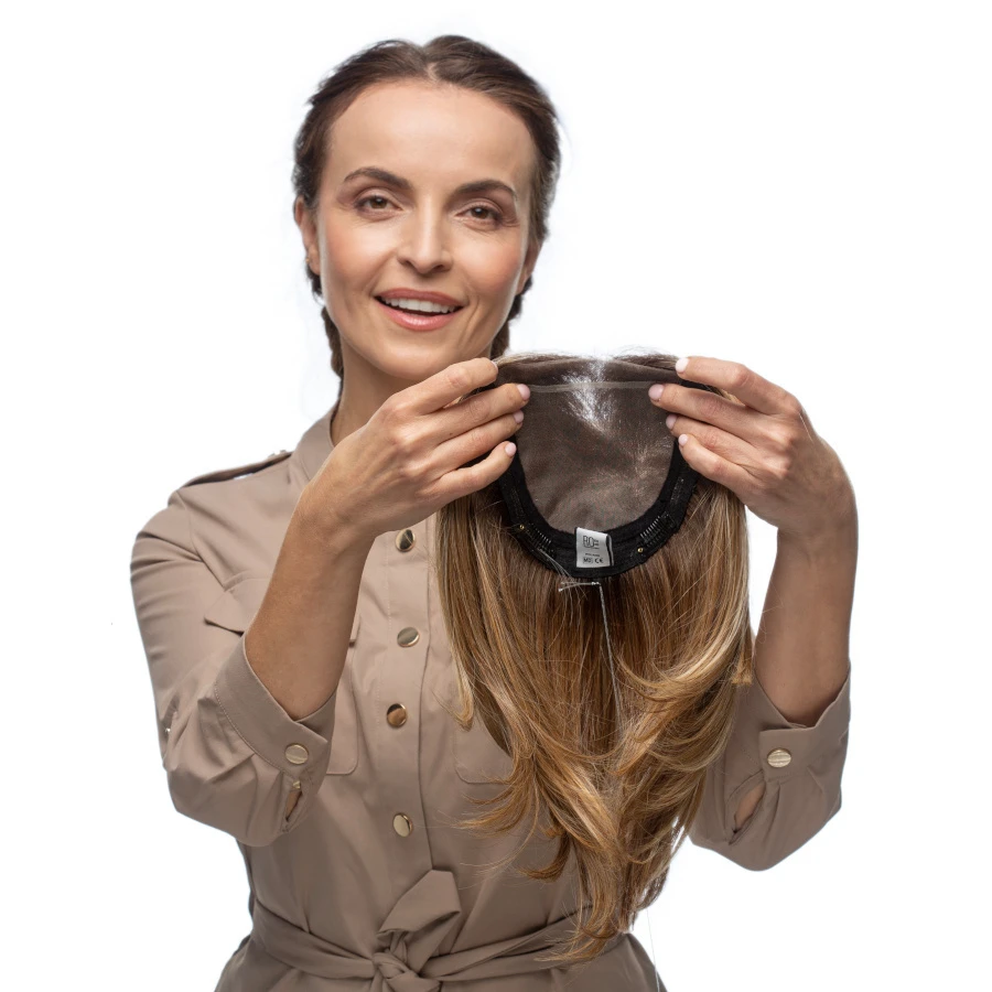 • nad čelem je model ukončen monofilem, který simuluje lidskou kůži - vlasy v čele lze zvednout a vyčesat a přesto budou vlasy vypadat, jako by vyrůstaly z Vaši kůže